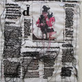 Beeldfragmenten uit het nieuws vormen de basis voor borduurwerk waarin de rauwe werkelijkheid van oorlog en rampen getoond wordt (reading the newspaper). Laag voor laag pel ik het materiaal af.
